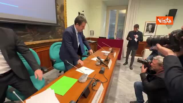 Amico Mio, il saluto di Salvini prima dell’inizio della conferenza stampa alla Camera – Il video